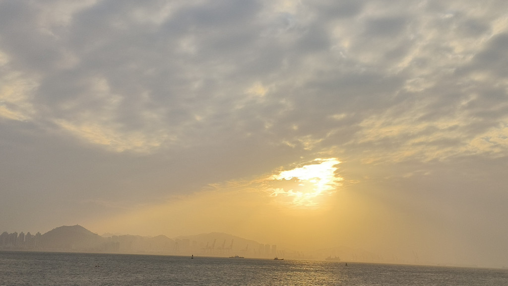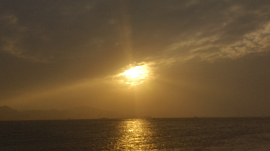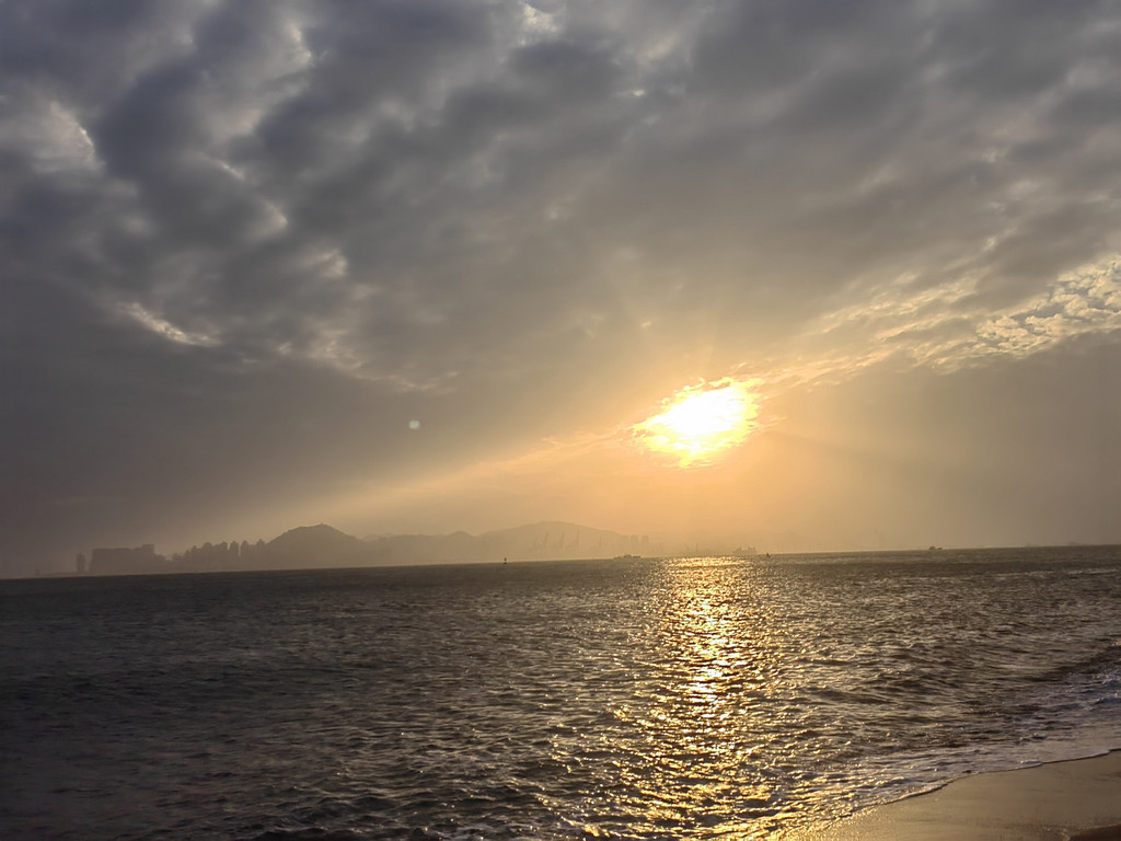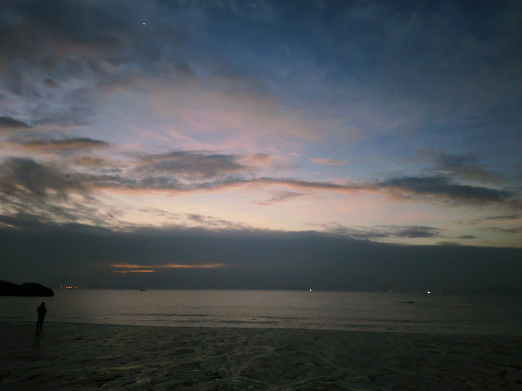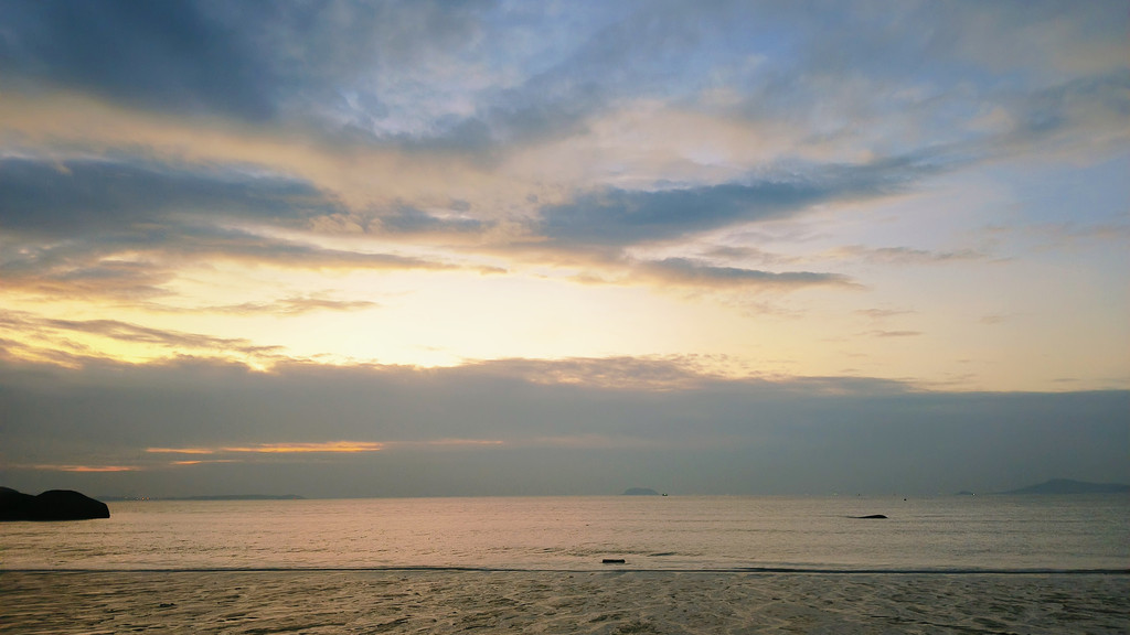 最开始的时候,依旧有很厚的云层挡住太阳,就想着,日落看不上的话,静静地吹吹海风也好,结果等到了云层散开,一切都刚刚好。