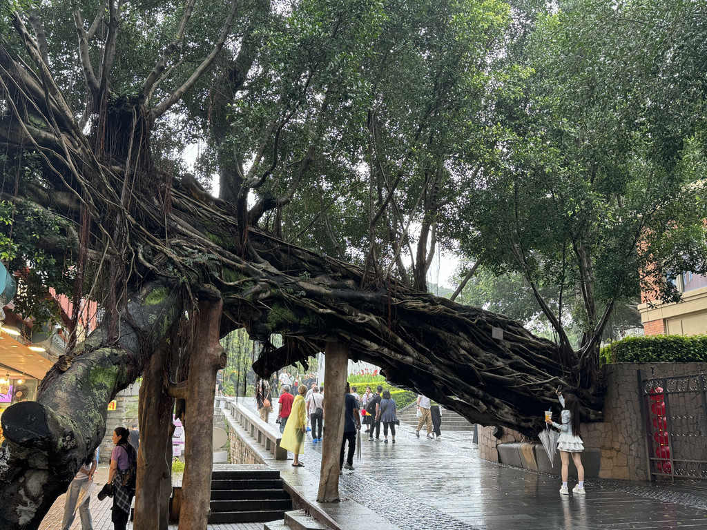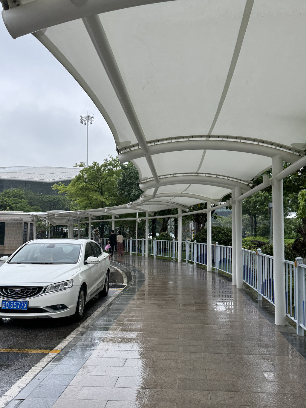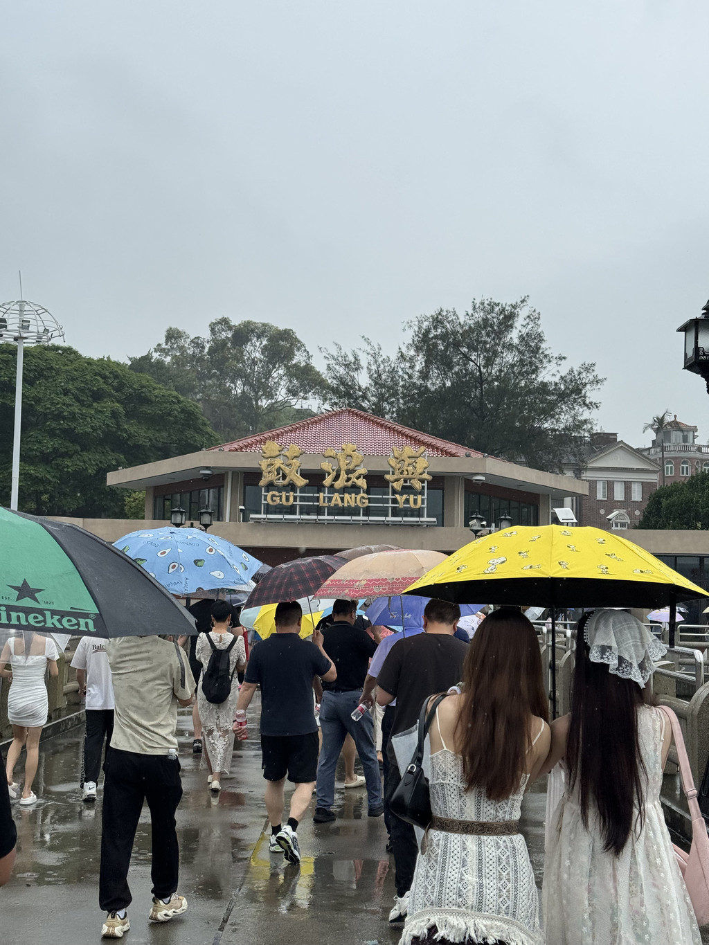城市旅游成熟的好处就是设施周全,行走方便。走出地铁口,拉膜遮阳长廊一直通往厦鼓码头,这样的雨天好感立马拉满。