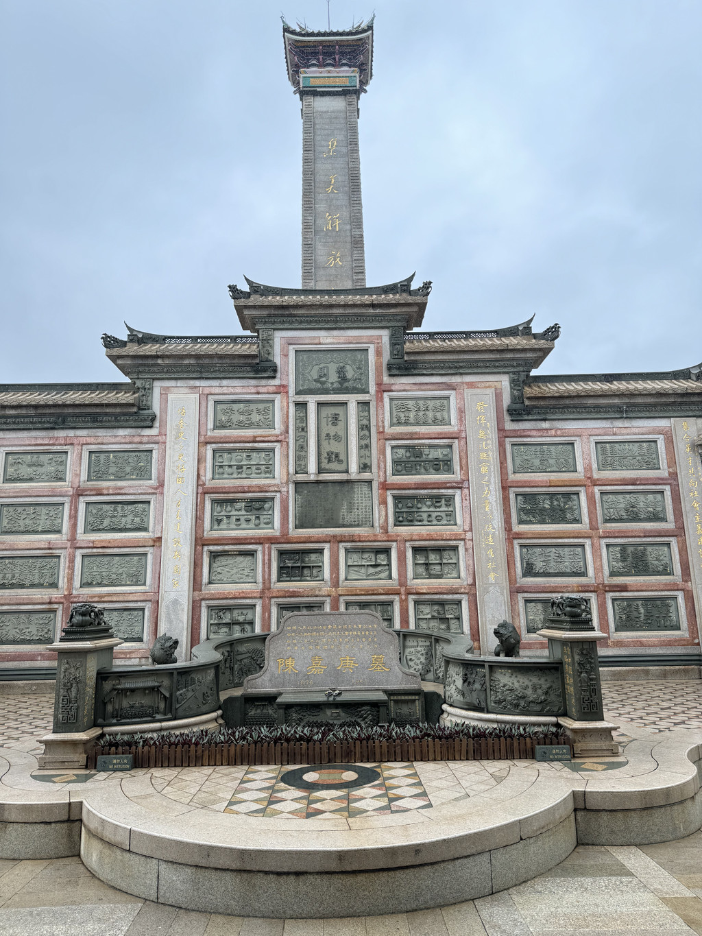 立一纪念碑决定终老于此,身后事自己安排,为自己建墓穴,一是不会占用耕地,二是长眠于毛主席亲自题名的纪念碑下。这是我见过最精美的墓碑,青石浮雕介绍着先生一生的重要经历。龟寿形墓无头无尾,象征着陈嘉庚先生一生办实业默默无闻,不图名利,无脚意味着四只脚扎根于祖国大地。