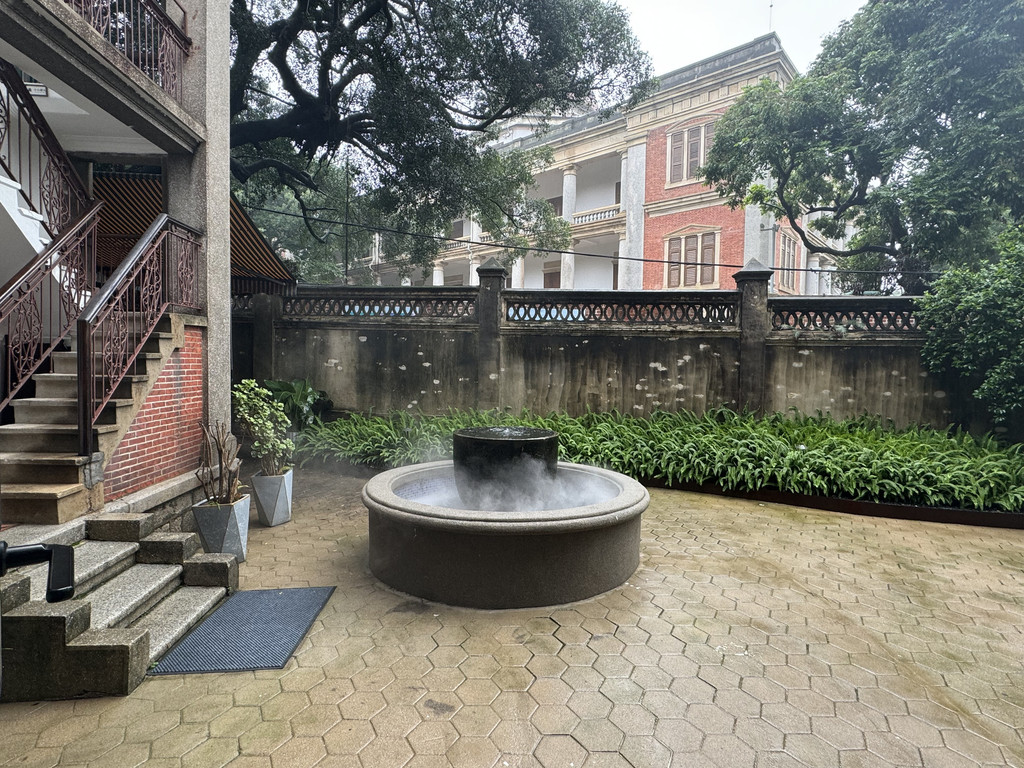 前院,一个龟池立于中,雾气缭绕。小乌龟时不时探出脑袋看看四周。