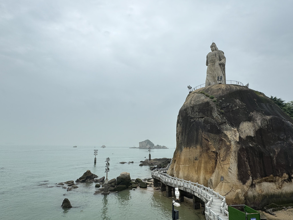 只要你走近鼓浪屿,就一定会看到郑成功这位民族英雄塑像屹立在皓月园覆鼎岩上,顶天立地,面向台湾,似是期盼祖国早日统一。