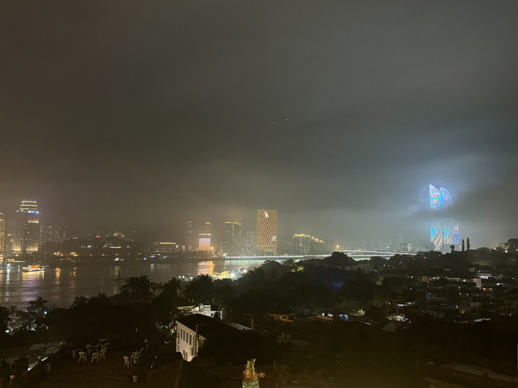 隔岸万家灯火,雨雾中若隐若现的双子塔,一边是百年沧桑,一边是现代文明。