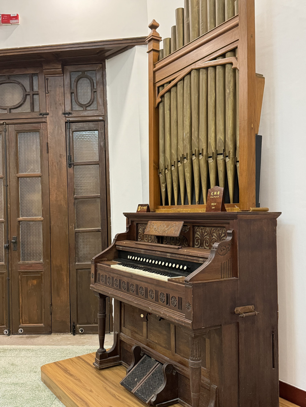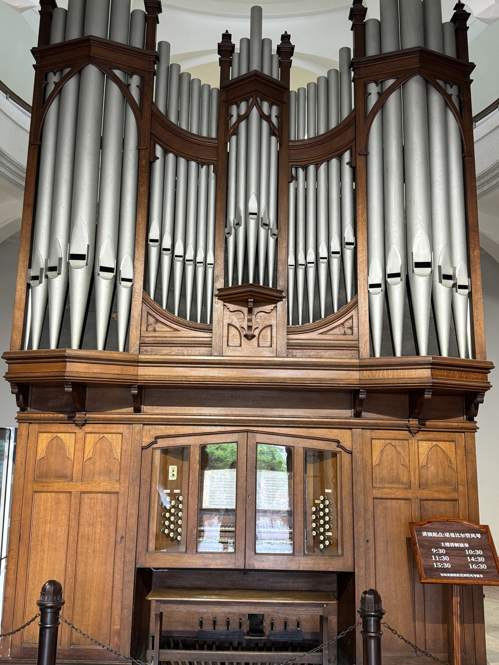 镇馆之宝“诺曼 比尔”管风琴,5米高,3米宽,有1350根音管,这辈子从来没有见过这么大的风琴。据标注,1909年出厂,来自英国,据说曾经置于一家英国教堂,听众从来只看到它的正面,而在这里,可以看到它的前后左右,甚至可以登上二楼俯瞰这架巨型乐器。
