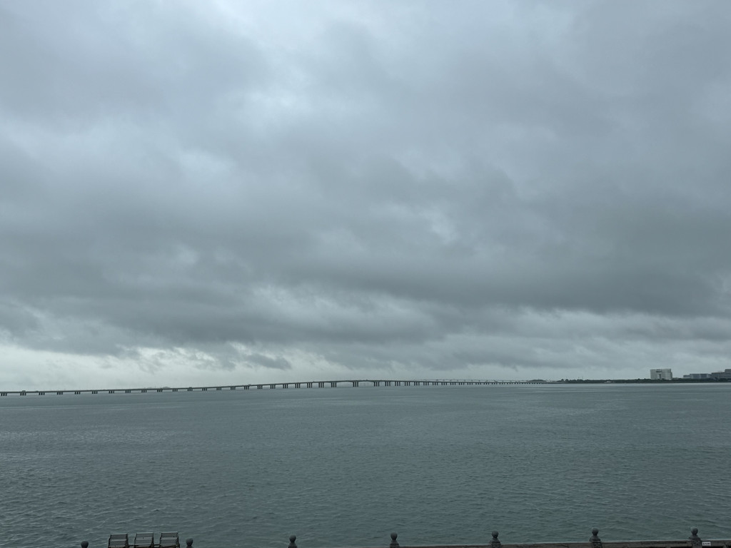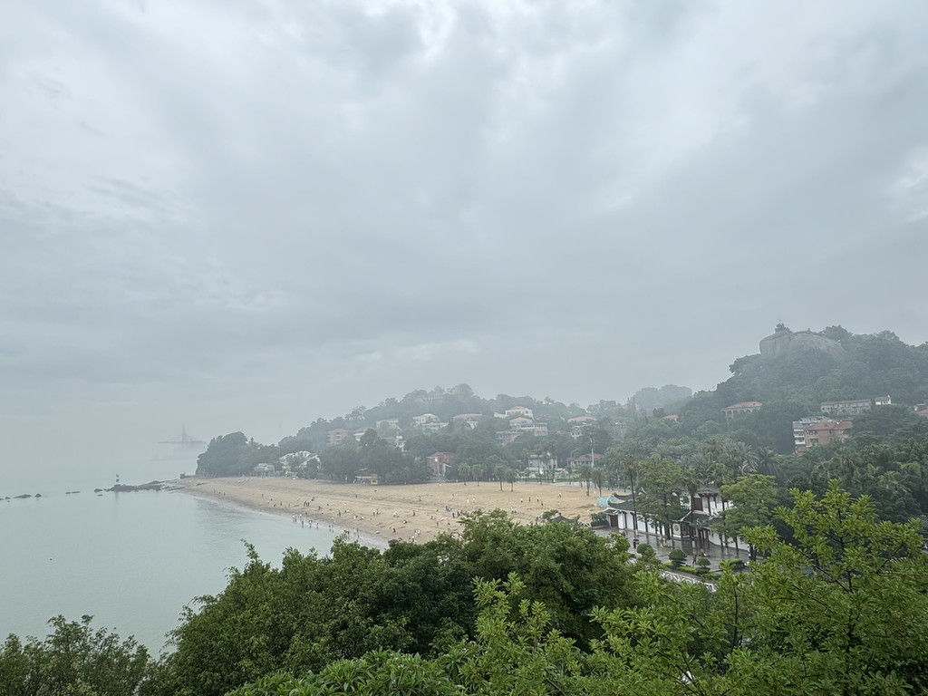 海水清澈如玉,可惜雨天海上一片朦胧。