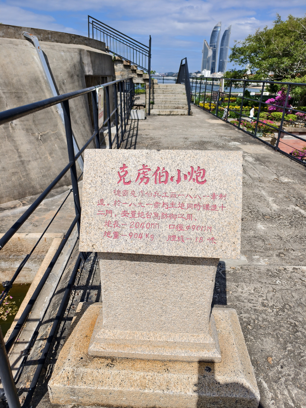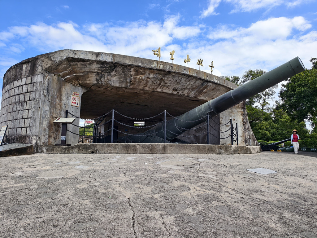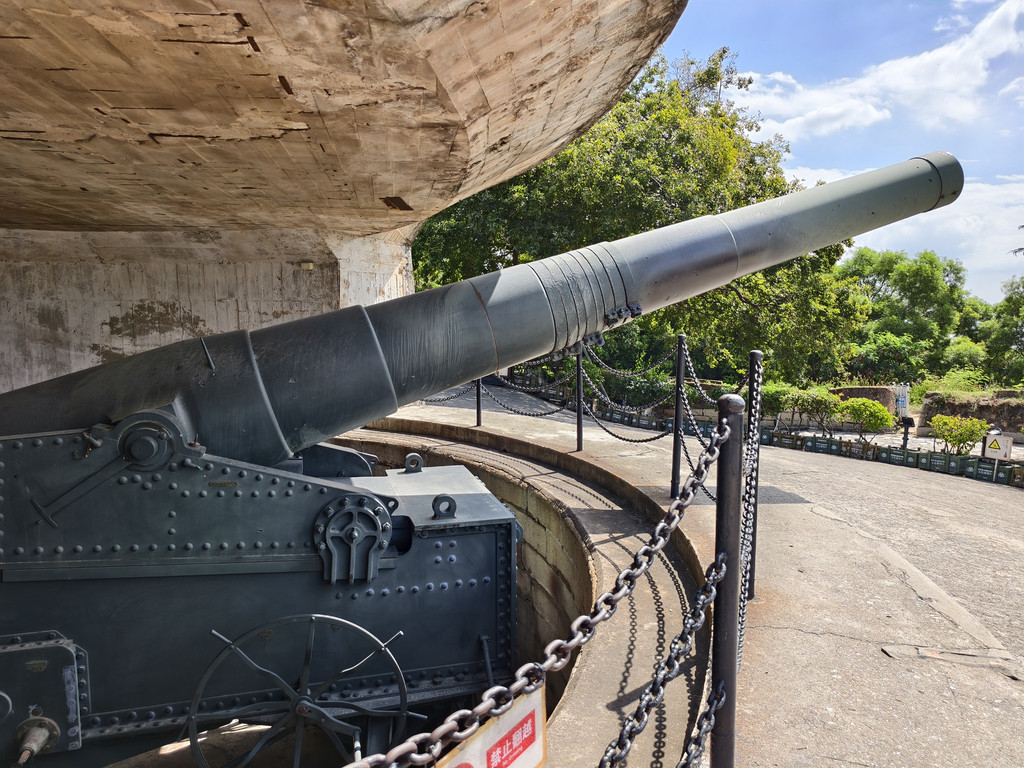 继续向海边前行就到了28生(280mm)克虏伯大炮所在的主炮台,炮台分东炮台和西炮台,原先各有一门1893年购自德国克虏伯兵工厂的28生(280mm)克虏伯大炮。可惜现只剩东炮台的克虏伯大炮了。