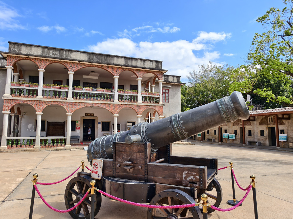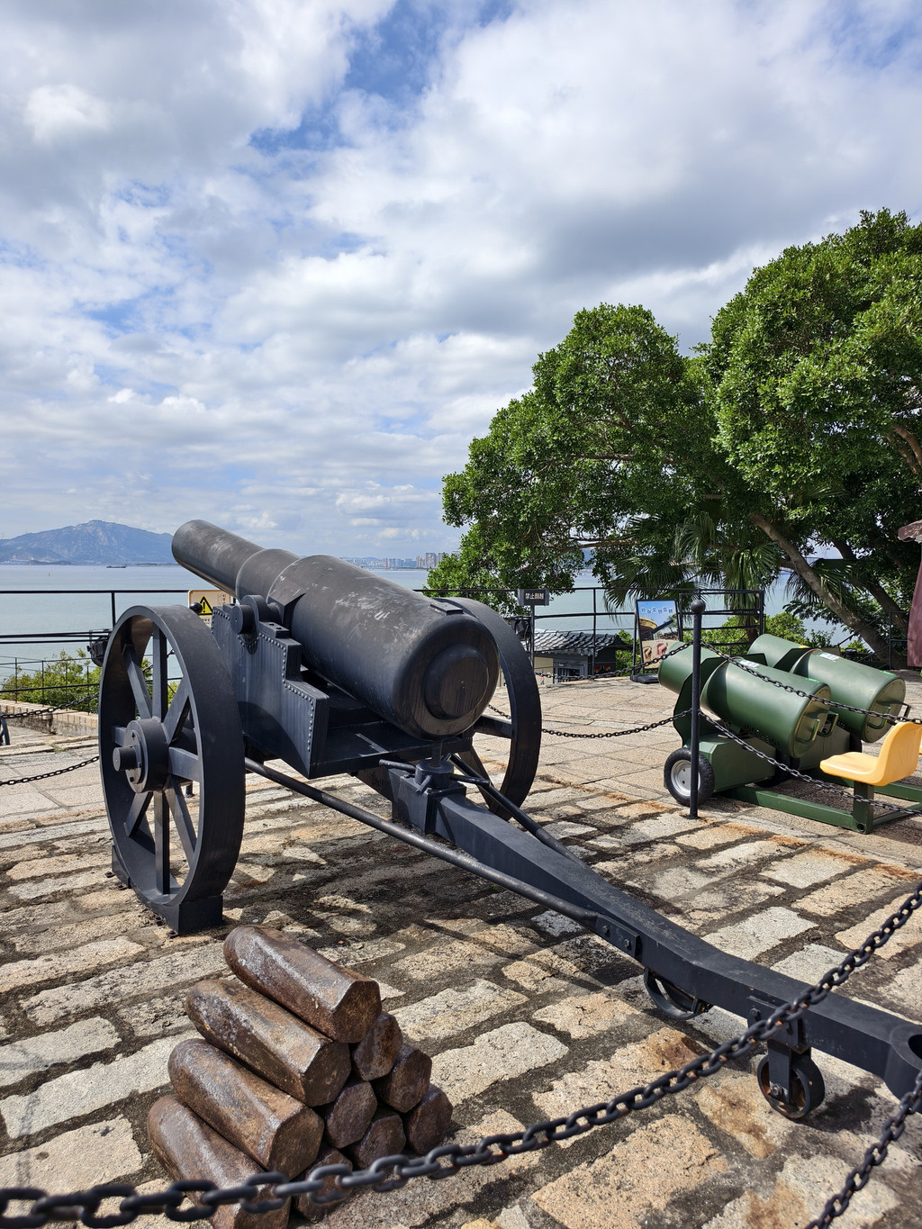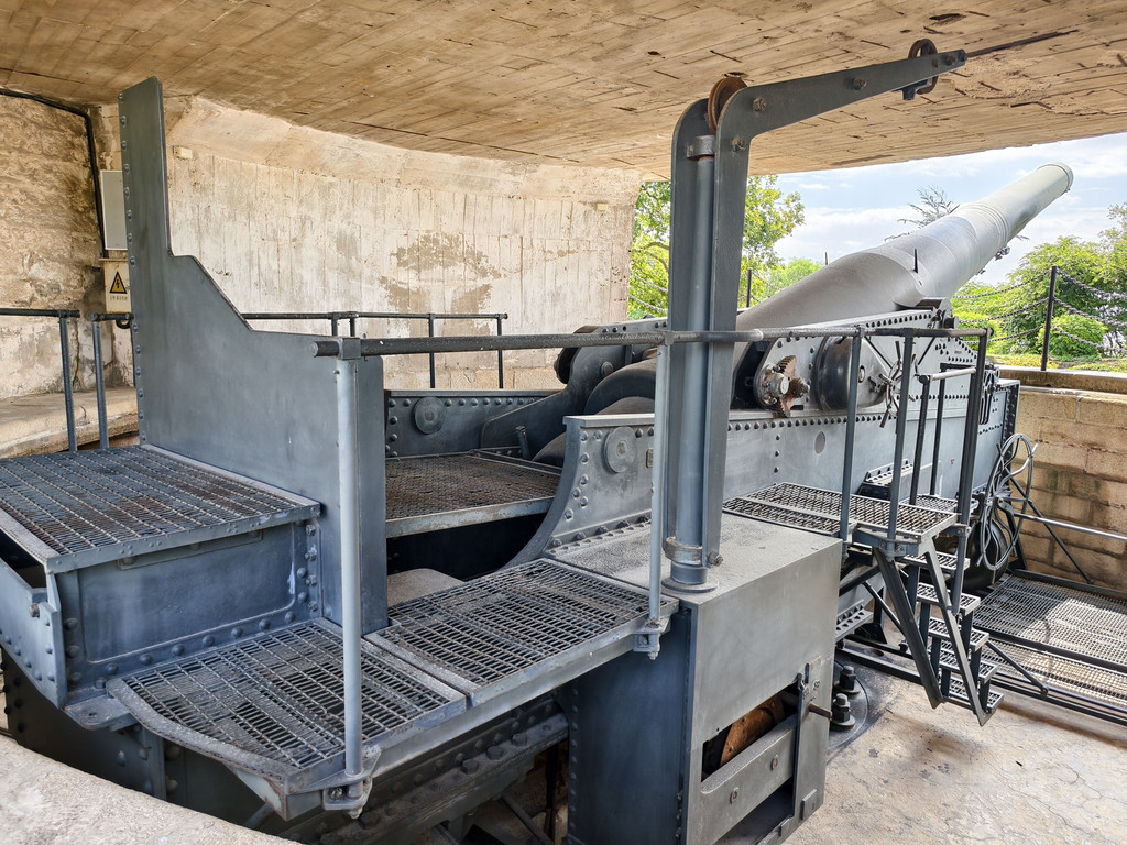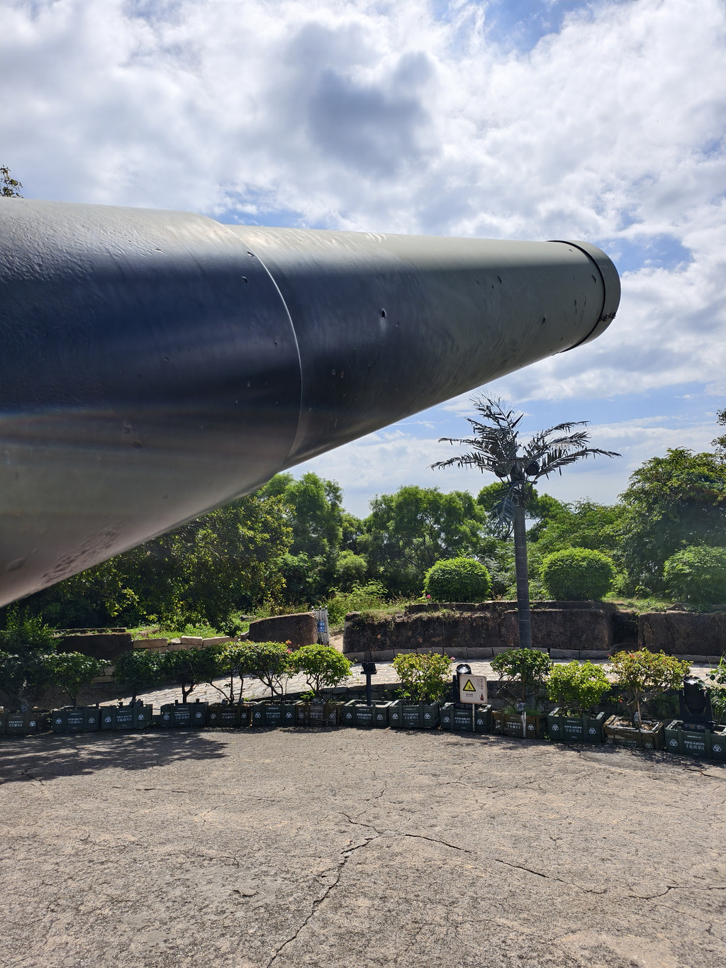 继续向海边前行就到了28生(280mm)克虏伯大炮所在的主炮台,炮台分东炮台和西炮台,原先各有一门1893年购自德国克虏伯兵工厂的28生(280mm)克虏伯大炮。可惜现只剩东炮台的克虏伯大炮了。