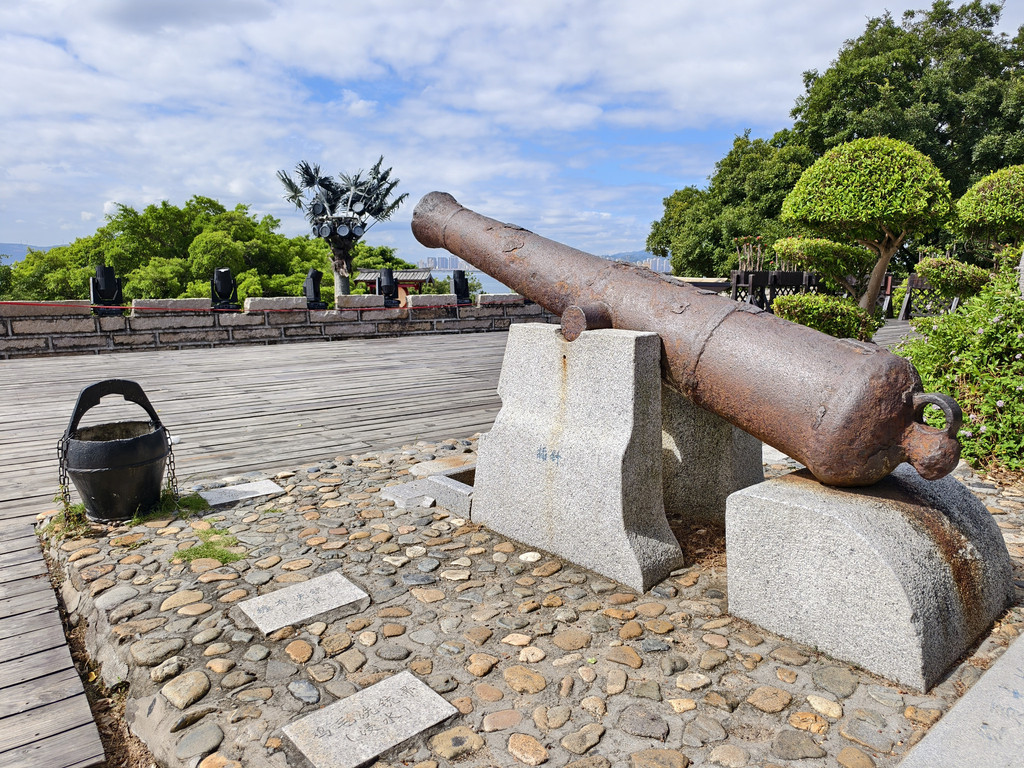 走进胡里山炮台,首先看到的是高坡上十几尊铁炮环列炮阵地。