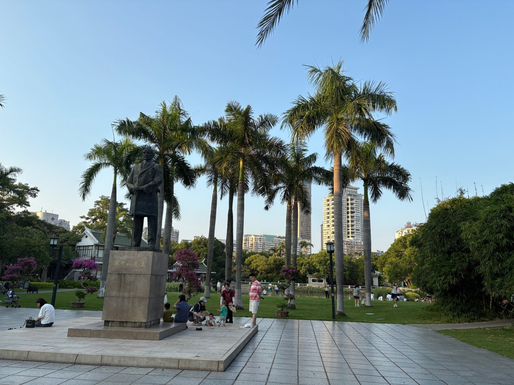 我说是因为椰子觉得这边冷吗?他跟我同时说,这边的温度还不够高。写到这里,我刚刚问了对面广州来的游客,我说广州有椰子吗?她说广州没有椰子,但是有椰子树,估计是太冷了,不能结果。从植物园出来觉得时间还早,我决定走回去,从植物园下坡就是中山公园了,进去转了转。