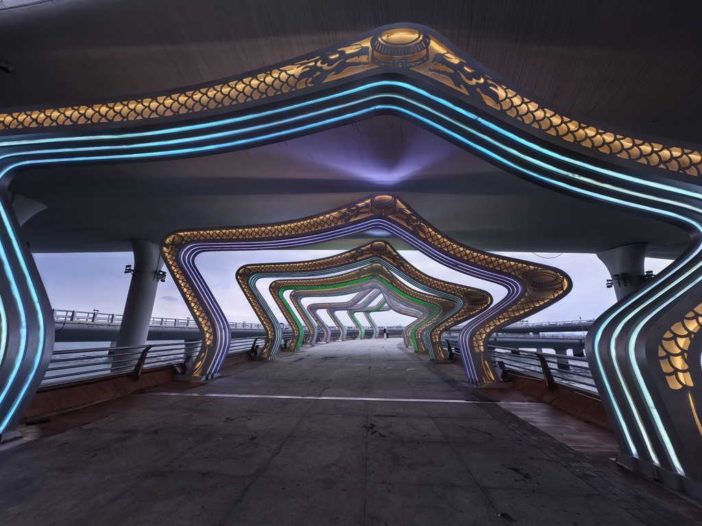 演武大桥观景平台:在这座桥上发发呆是一件非常舒服的事情,看着一望无际的大海,海风吹拂着秀发,三千烦恼丝被捋得清清楚楚,烦恼统统消失掉的感觉。后靠双子塔,有一种背后有靠山,面前有远方的感觉。