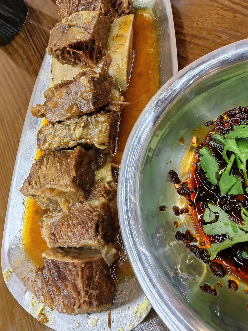 经典牛肉小吃:我们选择在泉州古城西街店的阿全全牛馆,一份大骨牛排,肉质细腻适合小朋友,小骨牛排肉质比较柴,一份手打牛筋丸和牛肉羹汤,汤是咸鲜味的,孩子非常喜欢,强烈推荐!