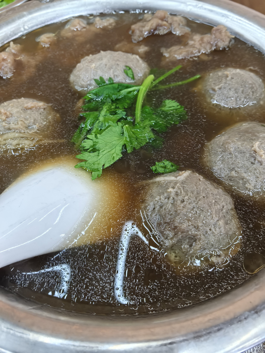 手打鱼丸汤:鱼丸快赶上狮子头的大小了,外面是鱼肉泥,内陷是猪肉,鱼丸非常劲道,吃起来跟撒尿牛丸的感觉差不多,但是味道绝对没的说。汤是咸鲜清淡口的,非常适合老人和小朋友。
