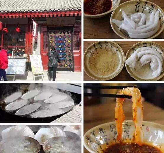 秦镇米皮,用大米磨浆蒸成。陕西省著名的传统小吃。这个配上我们的陕西特色肉夹馍味道更是一绝。