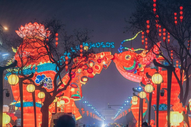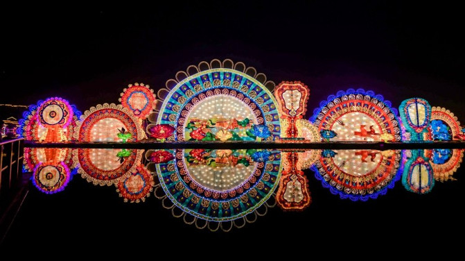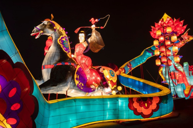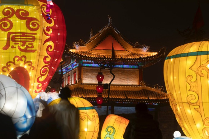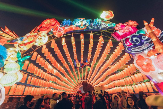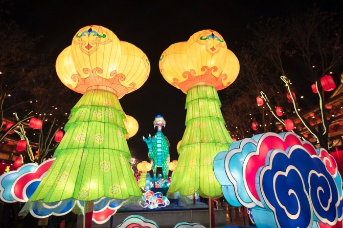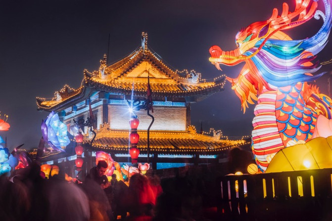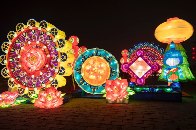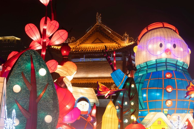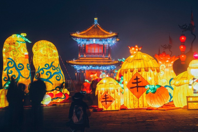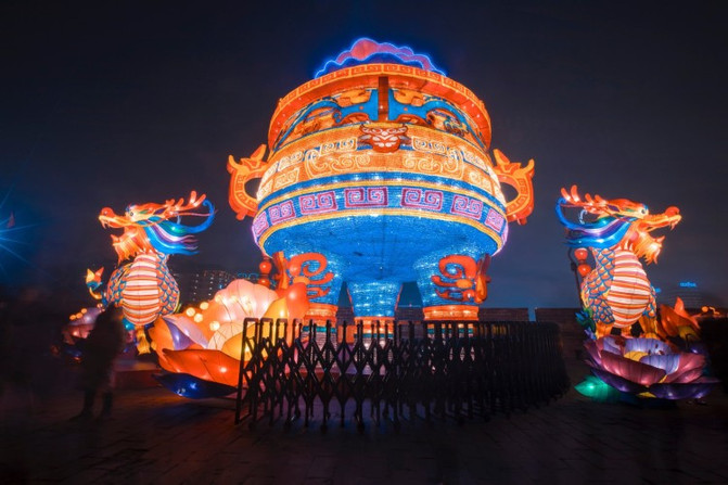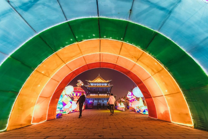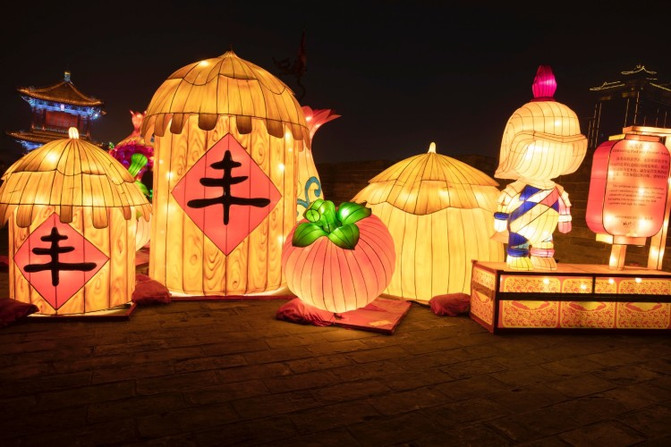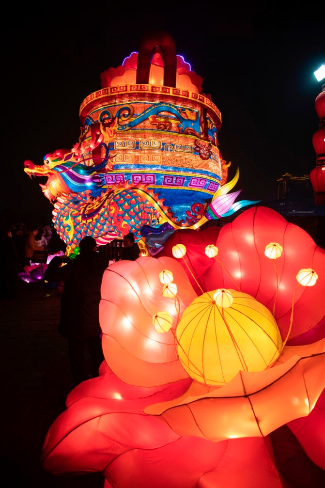 盛世长安区、欢乐祈愿区、锦绣中华区、梦幻童真灯区、琉光古今区,5大主题的炫彩花灯,照亮了整个南城墙区域。