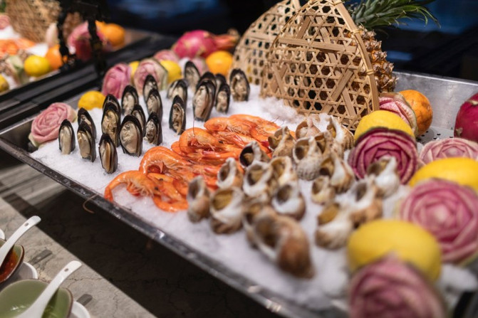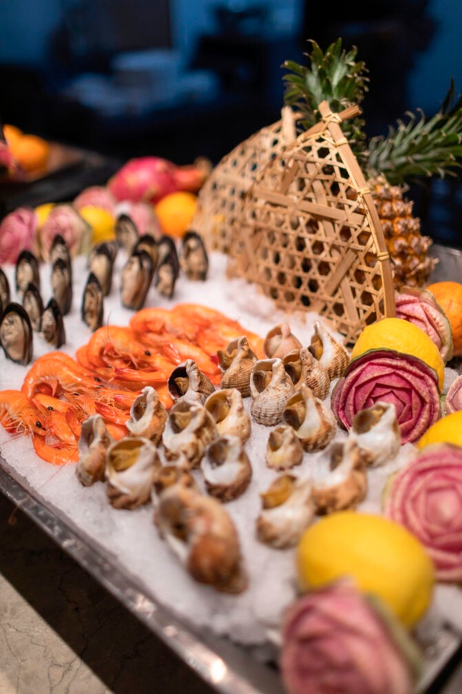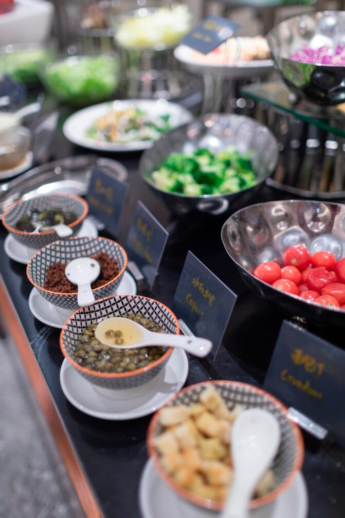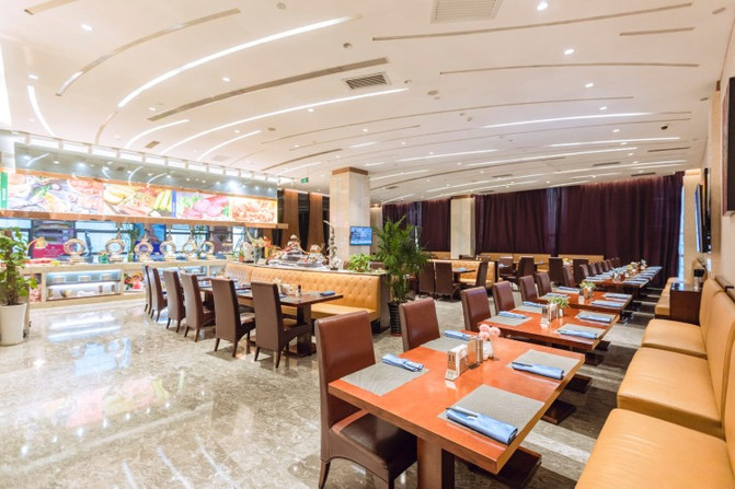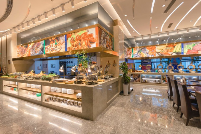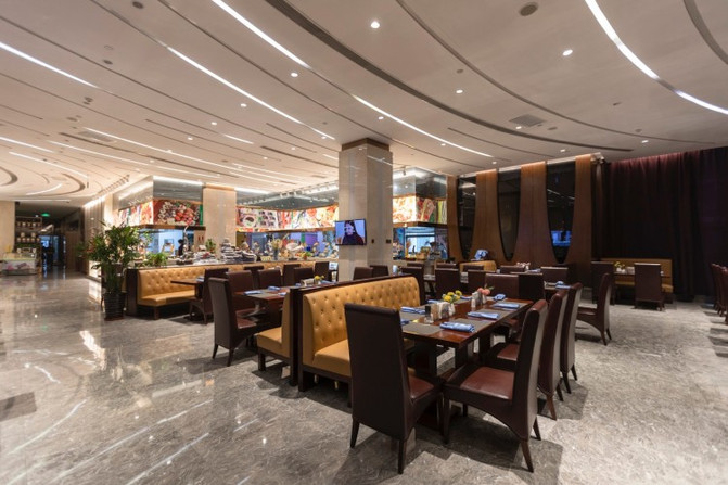 酒店一楼的自助餐非常棒,环境装饰高端大气,空间分割也很巧妙,增加了私密感。
