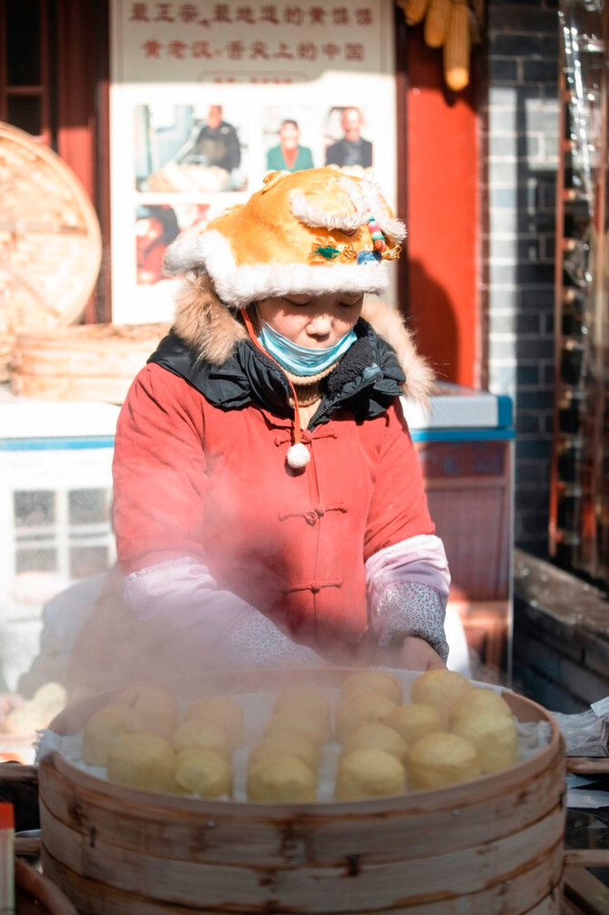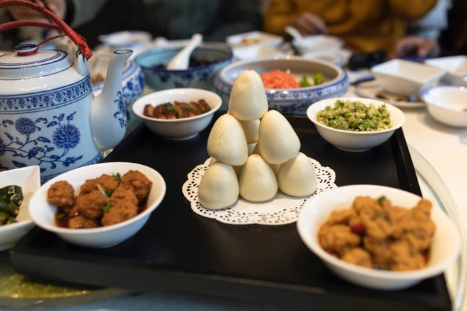据说这是一道旧时官员上朝时的工作餐,窝窝头做成了缩小迷你版的,配上酸菜、炸萝卜丸子、扣肉等。