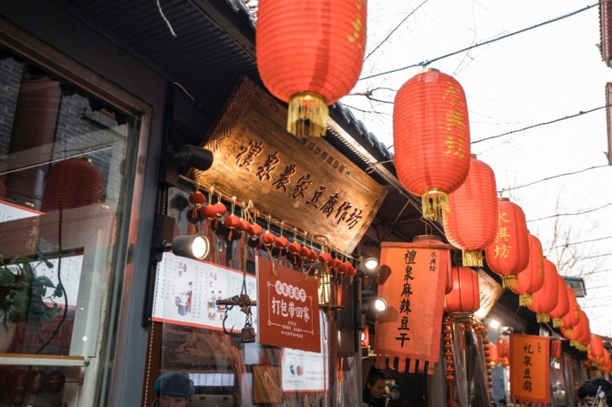 整个永兴坊分区明朗,根据陕西不同的区域,划分了陕南街、陕北里、关中巷,方便大家根据自己的口味选择自己喜爱的美食,因为这里美食太多,必须有的放矢,坊内随处可见导游图和排队的走向、古老的店招……指引着吃货们前进的方向。