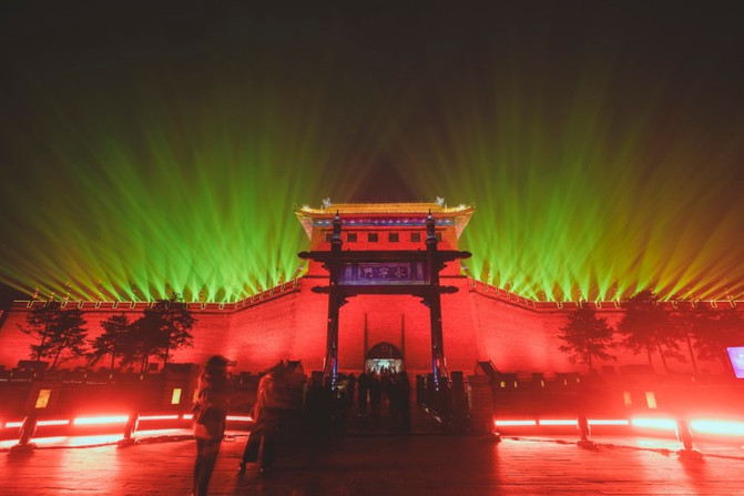 城墙之上的灯光盛宴有着独特的魅力,鳞次栉比的花灯点亮了城市的边际,璀璨的灯光和巍峨的城门箭楼交相辉映,青砖翘瓦在夜色中诉说着古城的传说。