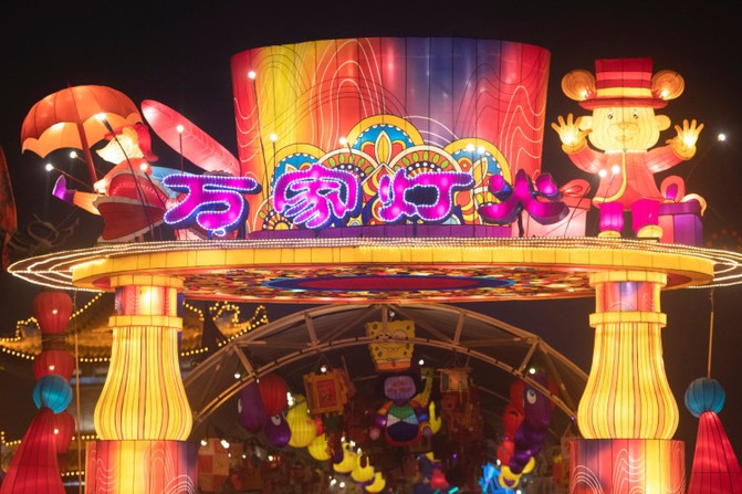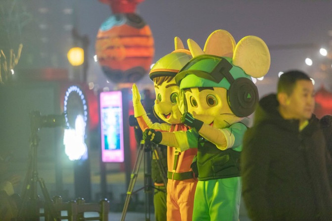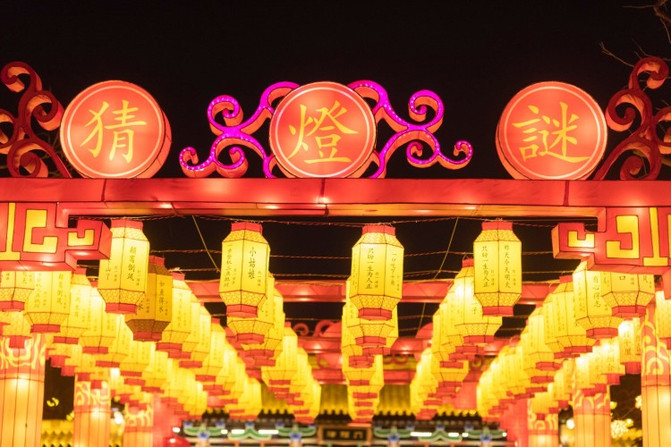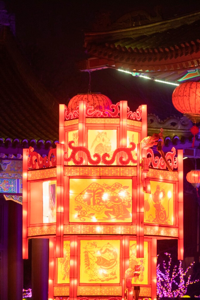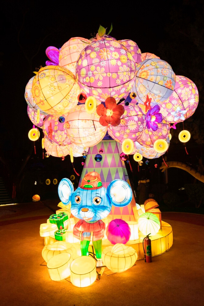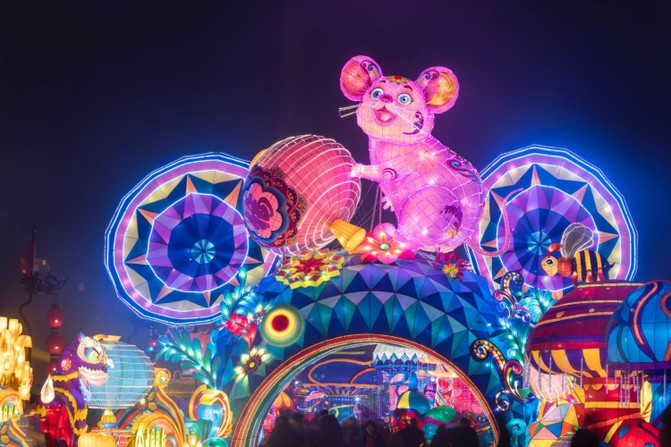 万家灯火的主题,挂满了鼠年的花灯和灯谜。