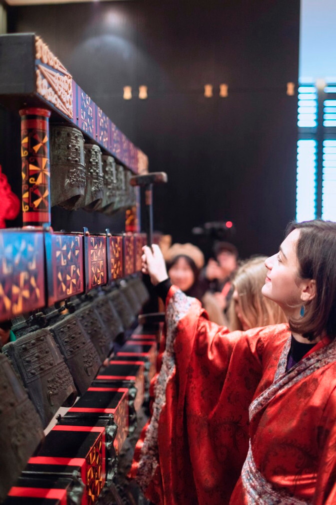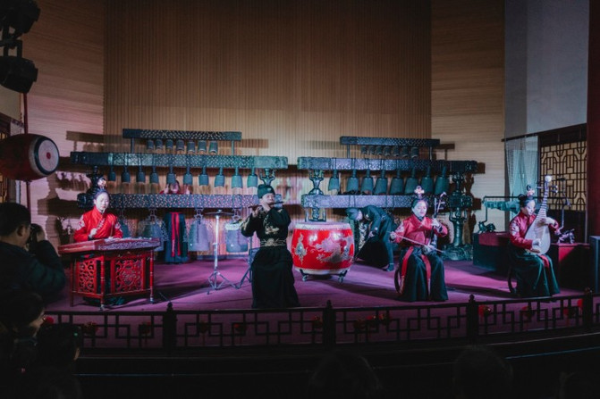 鼓楼一层是关于鼓主题的展示馆,舞台上有仿秦乐府编钟表演,听起来还是很震撼的。