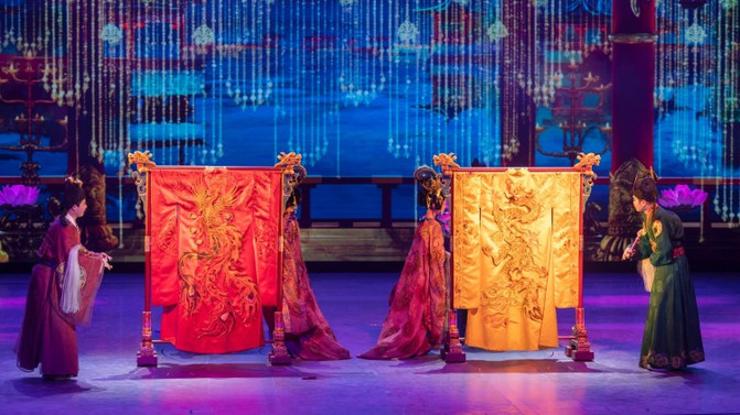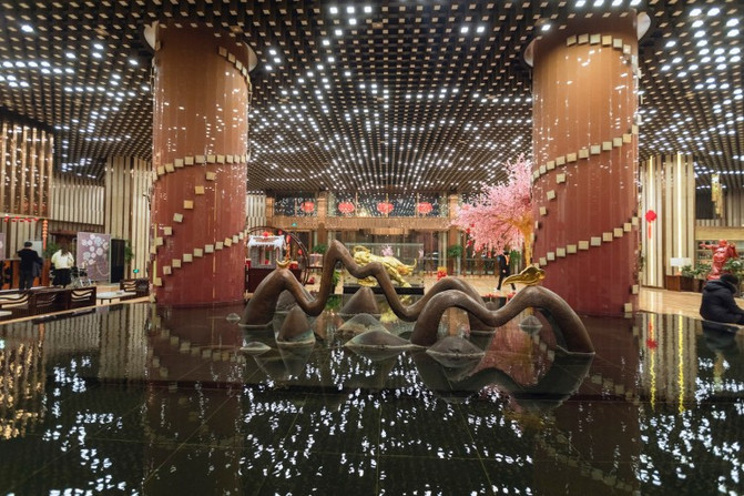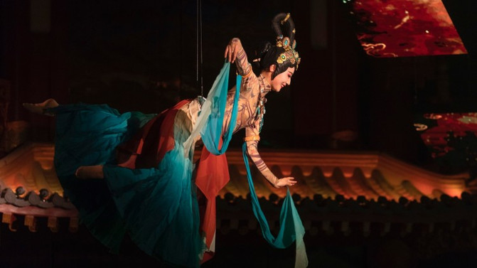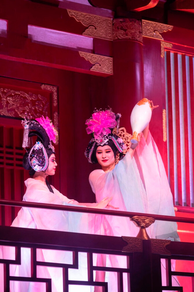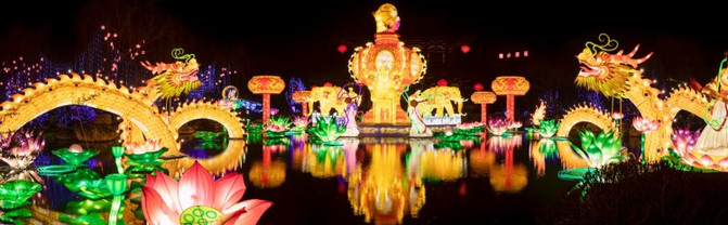 最引人入胜的就是盘旋在汉白玉芙蓉桥上的“龙凤呈祥”,漫天飞舞,光影交映,行走其上宛若身临其境。