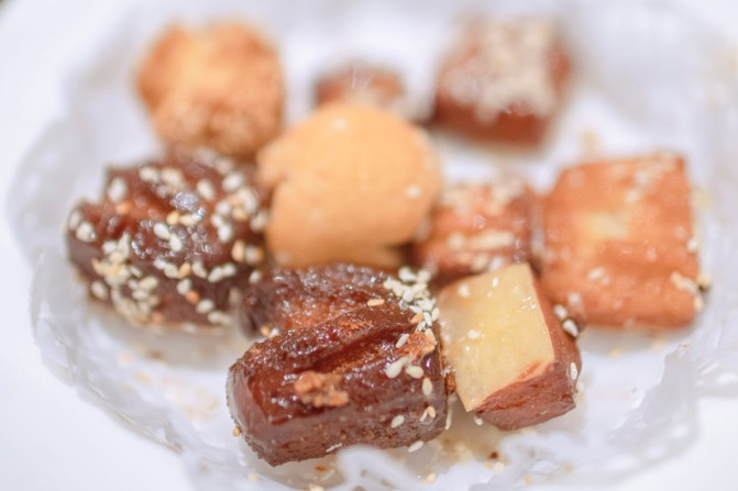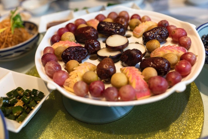 蒸着吃的水果拼盘,口感和生吃不一样,别有风味。