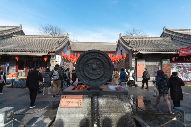 在永兴坊的入口便有镜鉴广场以做纪念,人以铜为镜,可以正衣冠,以古为镜, 可以见兴替,以人为镜,可以知得失,便是唐太宗李世民对魏征的最高评价。