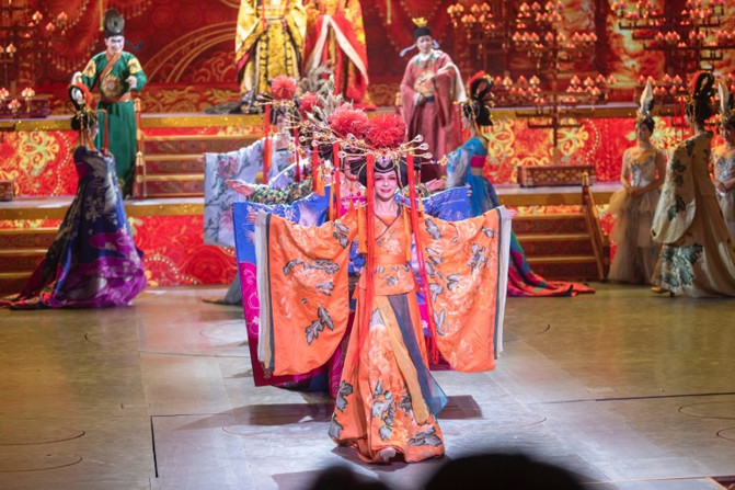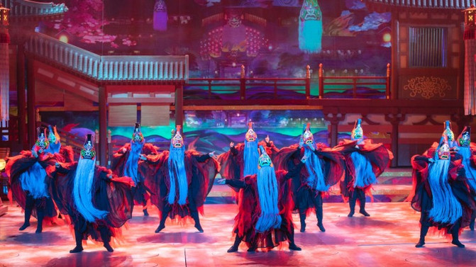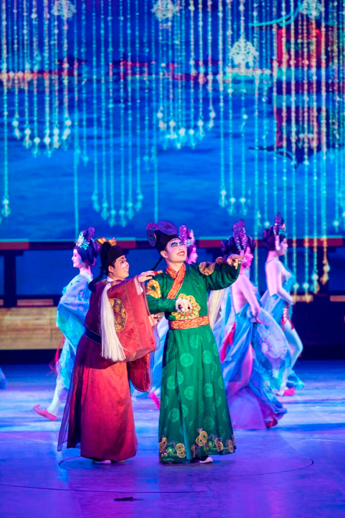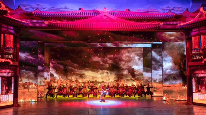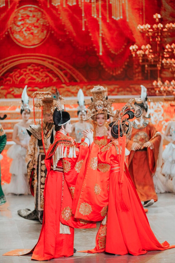 西安曲江大唐芙蓉园超时空唐乐舞剧《梦回大唐》黄金版分为序《梦回大唐》以及《烽火长安,铁血壮士战长沙》《国色天香,华清沐浴凝九州》《社稷兴旺,傩面百戏长安城》《丝路风情,一带一路美如画》《盛世婚礼,梦回大唐颂辉煌》五个篇章。