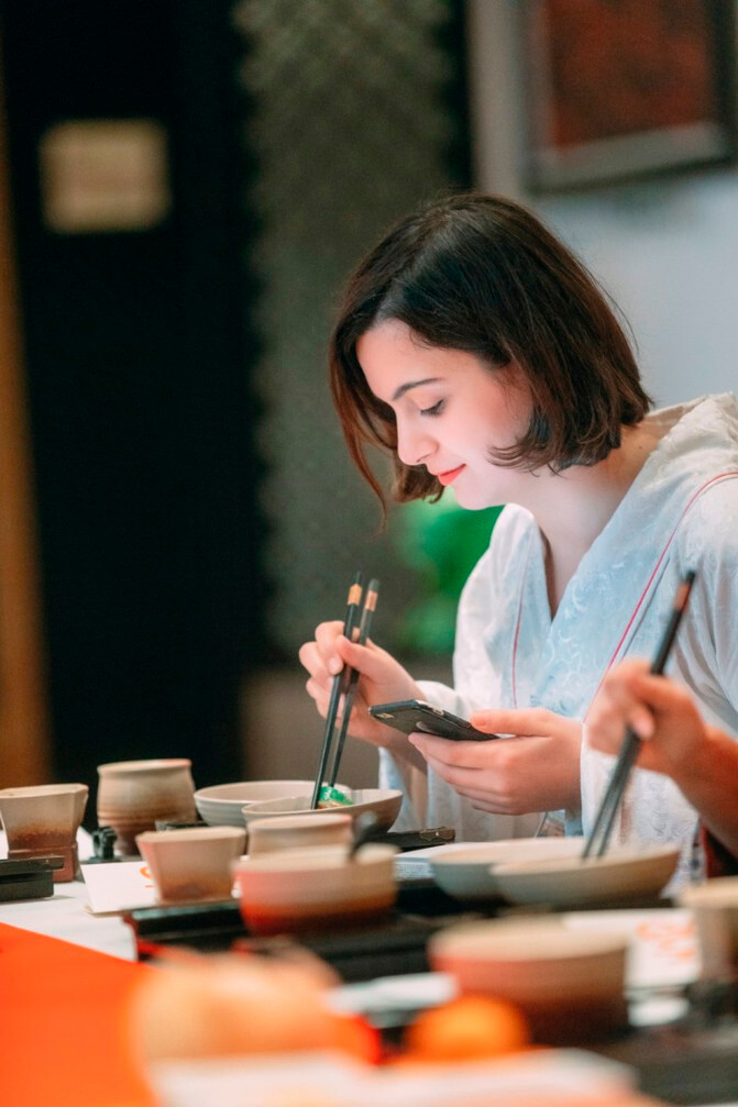 在道德讲堂里,可以体验一番着汉服,明汉礼的活动,这也是亲子研学访古的重要项目。