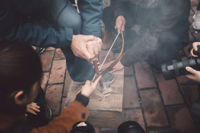 半坡遗址厅的后面,里面种植了众多的牡丹,也是一个研学体验园,有专门的老师指导大家体验原始人的生活方式,比如钻木取火、给石器钻孔等等。