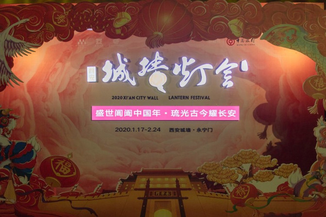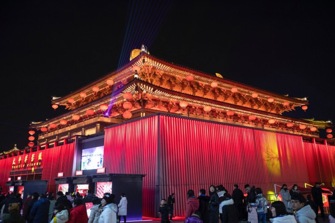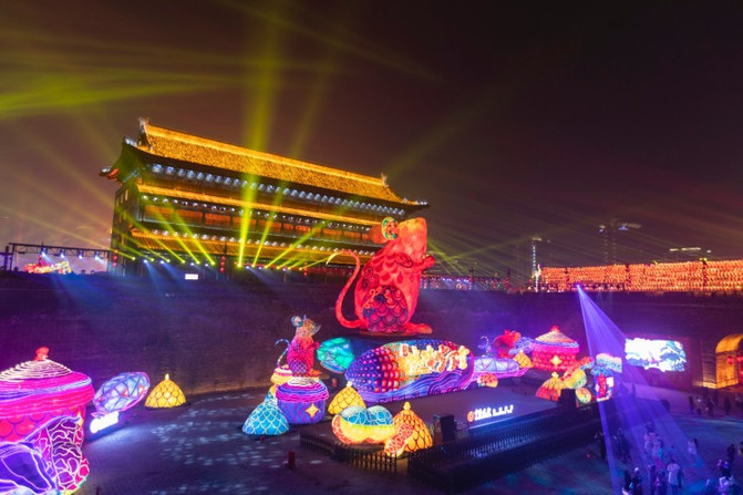 晚上西安城墙新春灯会