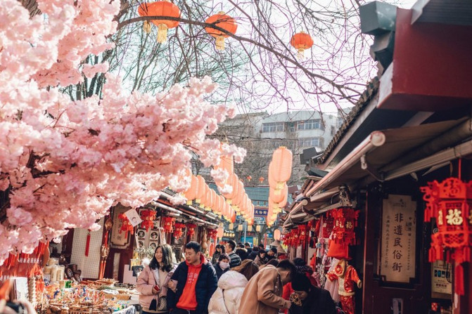 永兴坊里遍布传统民俗、非遗美食、文艺演出,随处可见浓郁年味及红火景象