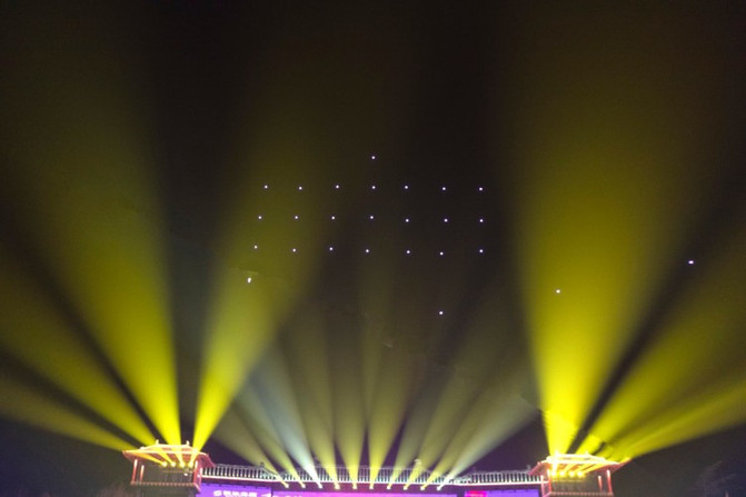 无人机梦幻灯光秀表演无人机组成星空、比翼鸟、华清宫等多种舞动造型,以情满骊山、唐宫夜宴、新春狂欢等关键词,打造一场精彩的空中光影秀,与璀璨星空共同舞动骊山。