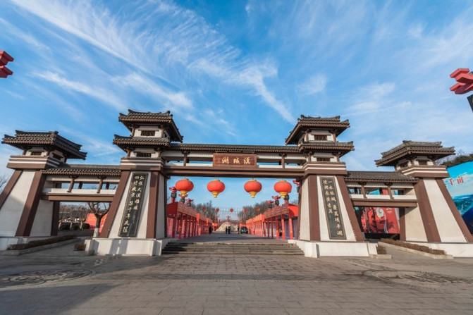 汉城湖有七个大小入口,从汉长安城的清明门附近进入景区,是封禅天下景区,标志性的四连汉阙迎面而来,上面写着汉城湖三个大字,穿过汉阙是一条宽阔的通道,这里经常举办一些灯会、庙会之类的大型活动。