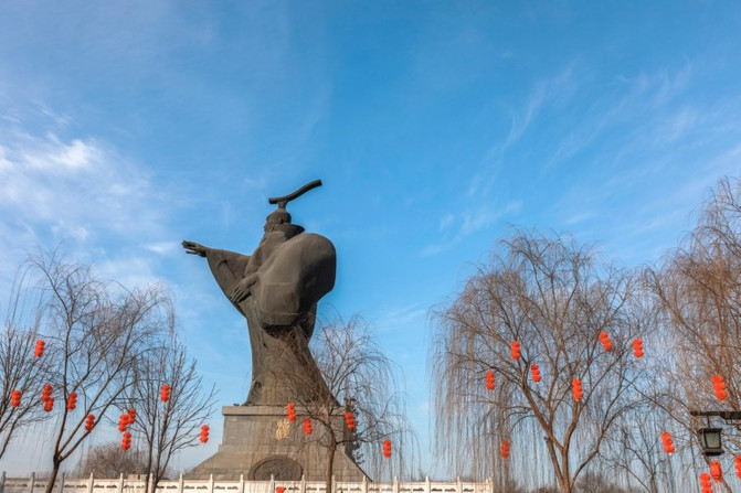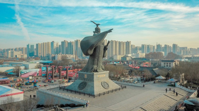 汉武大帝雕像高21.5米,寓意着西汉统治215年。基座高度7米,寓意汉武帝刘彻是西汉的第7位皇帝,这座雕像也是中国皇帝像中最大的一座。
