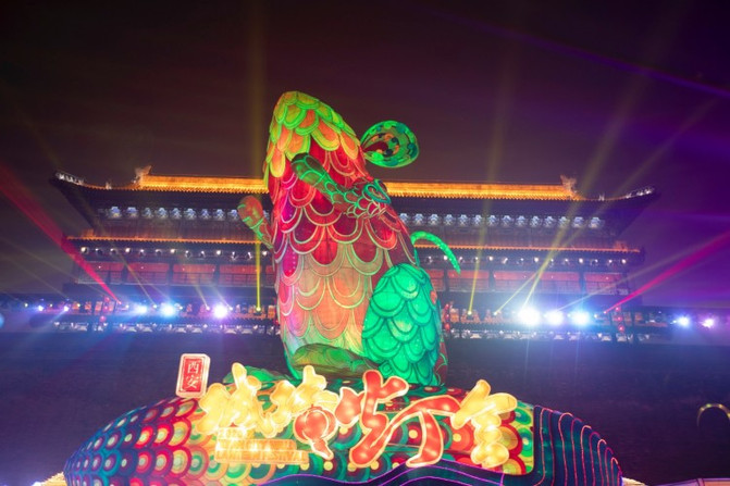 今年第33届庚子年新春灯会,依然以城墙南门永宁门为中心,西安城墙南门永宁门,是唯一保留下来的带有闸楼的城门,城楼前的花灯广场星光熠熠,灯柱璀璨。