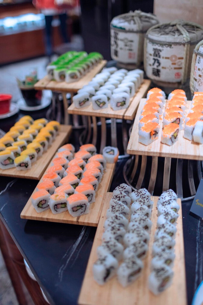 提供早午晚餐,美食种类非常丰富,中餐、西餐、日料、西安本地美食……味道也很不错,食材颇为新鲜。