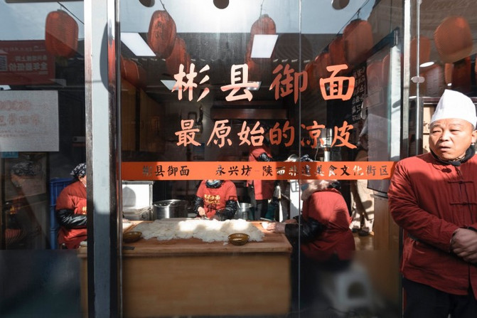 彬县御面和凉皮不同,色亮如玉称为“玉面”,以其为宫中贡品而称为“御面”。
