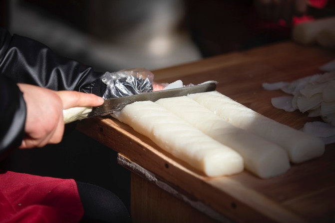宁强千锤酥,以优质花生米、芝麻、核桃、瓜子仁、冰糖、桂花粉、蜂蜜等为原料,先用小火在锅中慢慢熬成稠状后,置于案板上,撒上一层干粉,用大木槌反复击打千余遍而成,成型后切块装袋。
