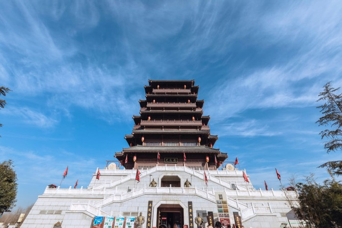 大风阁,汉城湖的标志性建筑,总建筑面积9442平方米,建筑高度为64米,地下两层,地上七层,开放时间:9:00至17:30,票价为50元。