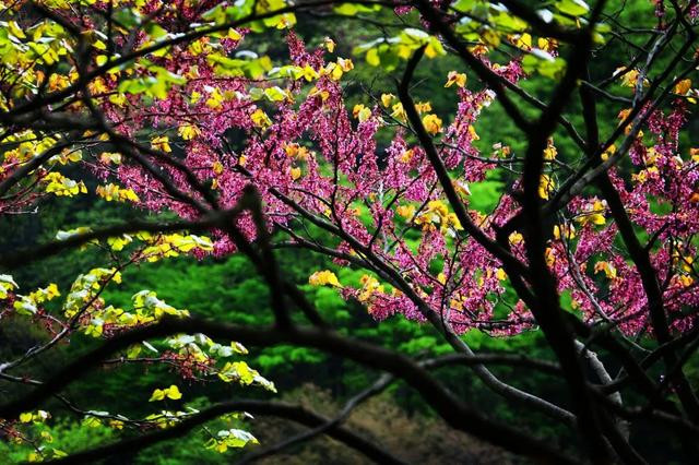 进入四月,太平国家森林公园内紫荆花春开如潮,灿若图绣,娇艳绚丽夺目,所形成天然万亩紫荆花海,常常使游客流连忘返,油然而生“花不醉人人自醉”的感触。