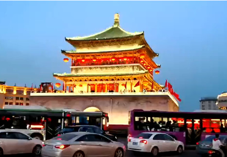 吃饱饱的我们开始去古城墙了,天也黑了,路灯也都开了。由于路程比较近,我和老婆两人觉得慢悠悠走过去,近距离感受下 西安 古都的魅力。华灯初上中的钟楼,真的好美。沿途中发现 西安 的建筑都特别的有风格,都有屋檐,跟其他城市的建筑很不一样,保留着 中国 古建筑的美。