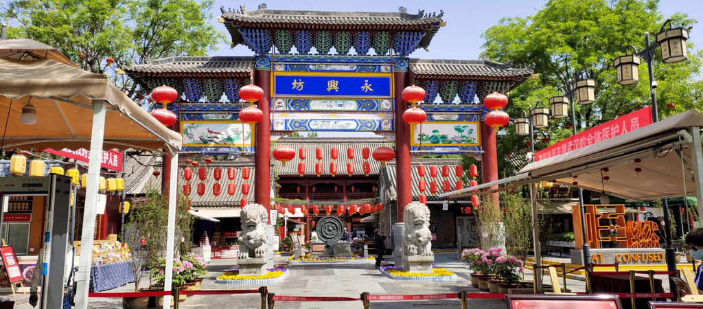 第二天的行程来到这几年才兴起永兴坊永兴坊位于西安中山门里,这里汇集了陕西各地特色美食经营户五十余家,有省级非物质文化遗产美食,比如粉汤羊血、秘制猪蹄、凉皮肉夹馍、小柿饼、糖糕等等,还有手工民俗技艺表演。各位小可爱们在永兴坊不但可以感受“唐城108坊”的风貌,还能够品尝到正宗的的陕西民间小吃;购买到原产地及现场用民俗老工艺加工的土特产、美食及旅游纪念品。