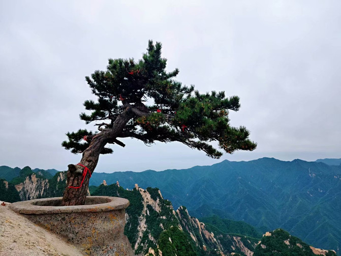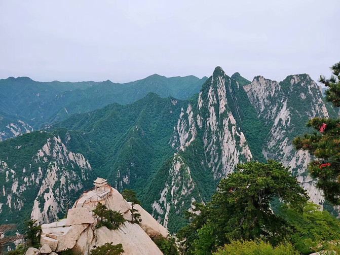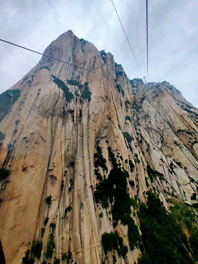 坐了两个多小时的旅游大巴,我们来到了陕西省华阴市。华山,古称"西岳",雅称"太华山",为五岳之一。听闻圈内很多好友当年搭乘西峰的上山缆车都浑身打颤,更别说直视脚下的万丈深渊,足以证明华山的险峻。今天游客不多,我独自一人搭乘一辆缆车,正好可以360°无死角全揽华山的千峰万仞、兀立突起。
