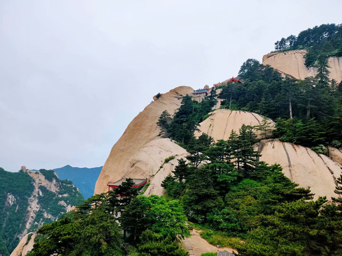 西峰上景观比比皆是,有翠云宫、莲花洞、巨灵足、斧劈石、舍身崖等,并伴有许多美丽的神话传说,其中尤为沉香劈山救母的故事流传最广。在西峰可以看到完整的日落,今天时间有限,只能领略秀美山川了。