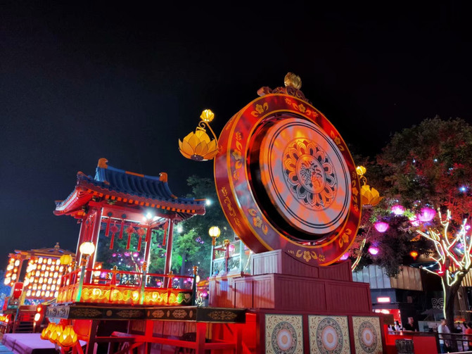 如果说白天的西安是一位80岁的老者,写满了沧桑和厚重,那么夜晚的西安就是一位18岁的妙龄少女,浑身透露着活力和诱惑。打卡完永兴坊,我们赶着去大唐不夜城看21:30的喷泉秀。虽说仍处于非常时期,来西安旅游的游客还是非常多的,大唐不夜城就是一个人声鼎沸摩肩接踵的地方。大龙师傅开车带着我在外围的街道转悠了一圈,我都能感受到西安夜幕下的曼妙多姿。可惜周边人多车多,我们转悠了半个小时才找到车位,到景区时喷泉已经结束,正巧赶上了大唐不倒翁的表演。