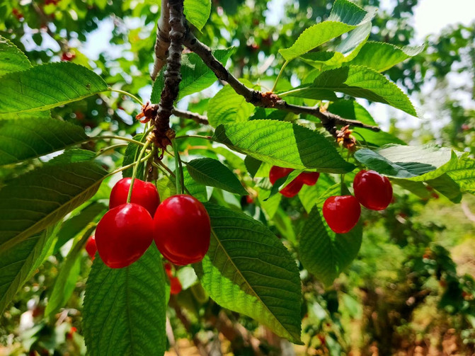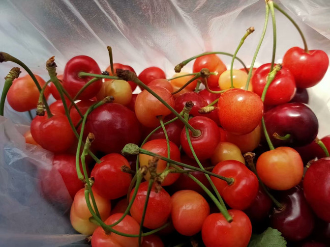 硕果累累、收获满满!在当地卖到三四十元一斤的樱桃,本地价格低到8元/斤,此时在采摘园才15元/斤!