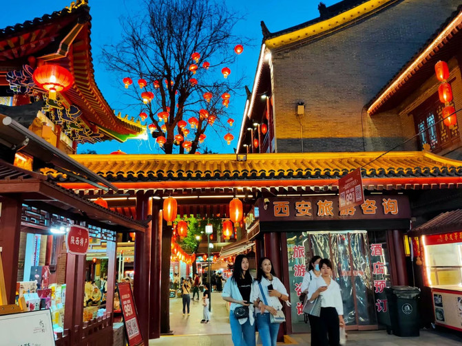 参观完兵马俑已经是黄昏了,此时西安古城已经华灯初上、灯火辉煌了!马不停蹄,大龙师傅载着我赶到了市区的永兴坊,揭开了西安夜生活的帷幕。