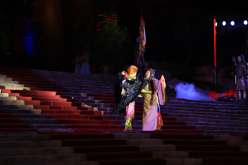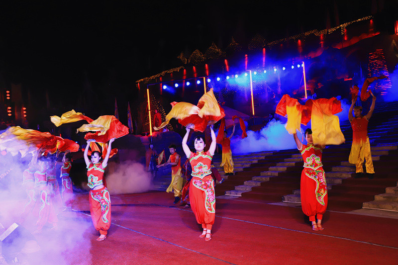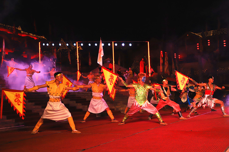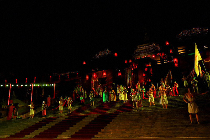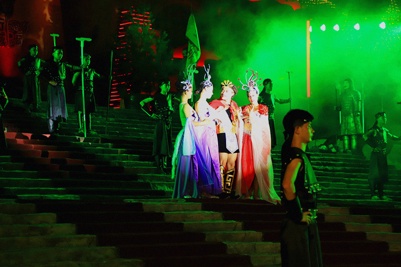 晚上八点,大型实景剧“周城千古颂”夜场演艺正式开启。