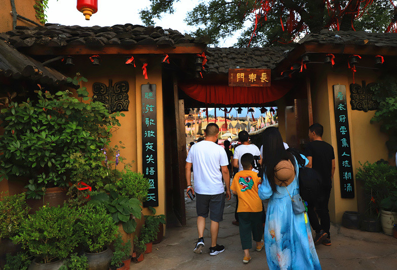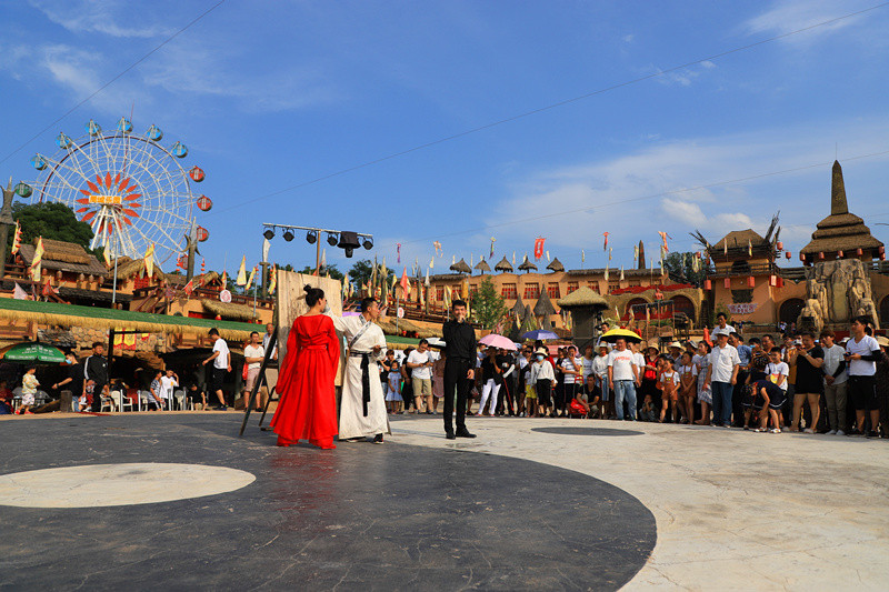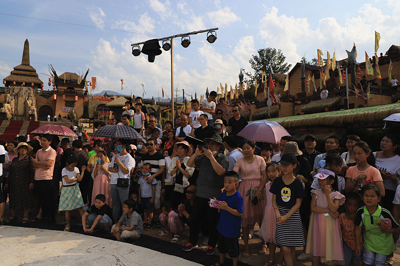下午四点到达,景区里竟然早已人气爆棚了,门口的游客一进来就围在了广场上看演出了。