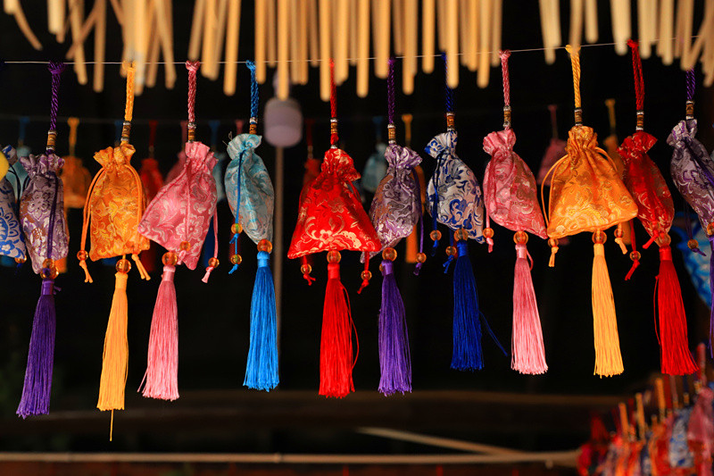 演出还有一段时间,带你去看看他们精心准备的香包吧。从工作人员那得知,香包可是和姜子牙有着密切关系呢。据说,香包是姜子牙为将士们精心配制的,可以驱除病毒,随身佩戴,最早的发源地就在周城。真是,千年荷包万里香,大美周城颂端阳。